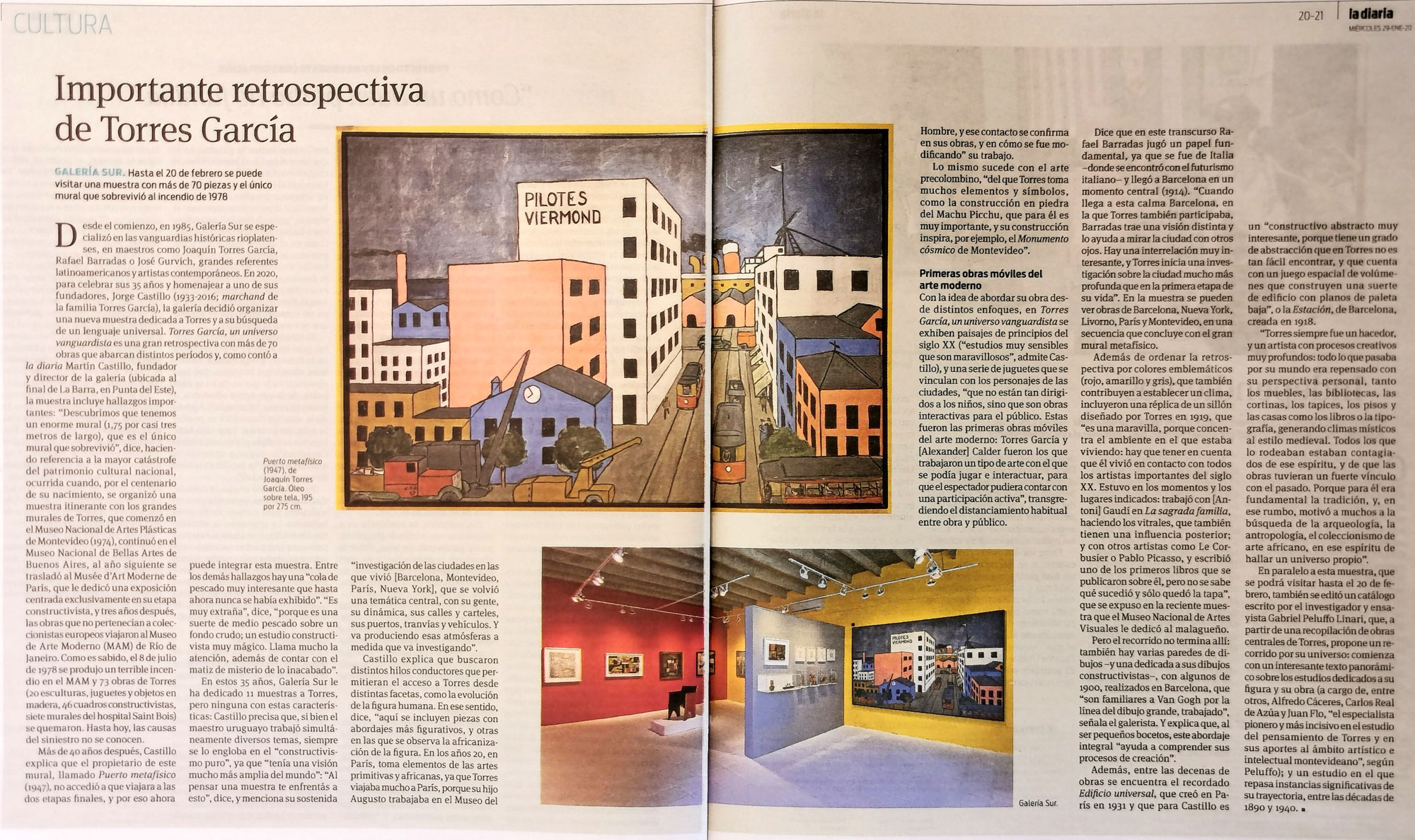 Es en París donde Torres García desarrolla en profundidad sus ideas plásticas constructivas. Durante estos años escribe más de veinte textos sobre cuestiones estéticas. Expone junto a Dalí, Giacometti, Lurçat, Max Ernst y Miró e individualmente en Galería J. Bucher. La grave situación económica mundial lo obliga a dejar París. En 1933 se instala en Madrid donde se encuentra con Guillermo de Torre; realiza una exposición en el Museo de Arte Moderno de Madrid con 70 obras. Edita junto a un grupo de artistas constructivos la revista “Guiones”.