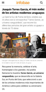 En 1938 realiza el Monumento Cósmico en granito rosa en Montevideo. En 1939 pinta los retratos de hombres célebres. En 1942 expone en Galería Müller, Buenos Aires. En 1943 funda el Taller Torres García (TTG) consolidando una nueva generación de artistas: pintores, escultores y arquitectos. Dentro de sus alumnos se destacan sus hijos Augusto y Horacio, Gurvich, Fonseca, Matto, Alpuy, Anhelo Hernández, entre otros. Ese mismo año comienza los frescos del Hospital Saint-Bois junto a sus principales alumnos. Publica «Universalismo Constructivo», donde reúne 149 conferencias dadas en Montevideo entre 1934 y 1943. Fallece en Montevideo en 1949.